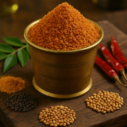 A perfectly balanced blend of curry leaves, turmeric, mustard seeds, coriander seeds, dry red chilies, and black pepper. Our Rasam Powder delivers authentic South Indian taste, aroma, and warmth in every spoon.