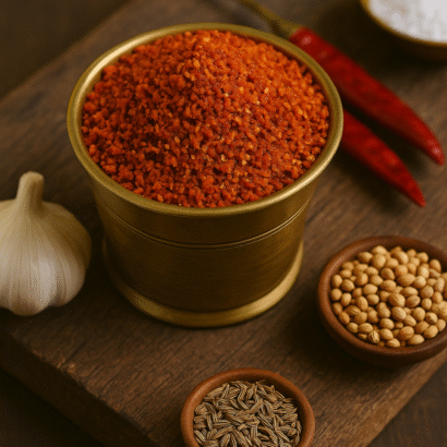 A bold and aromatic blend of dry red chilies, garlic, salt, jeera, coriander seeds, and black pepper — crafted for true spice lovers who enjoy rich, fiery flavors.